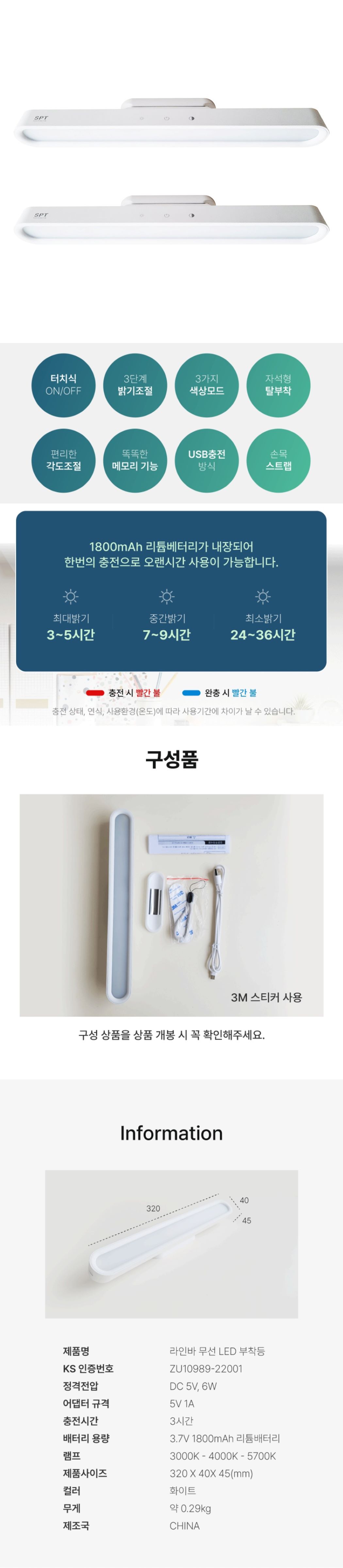 [메가스탠드] 무선 전등 조명등 무드등 부착식 충전 조명