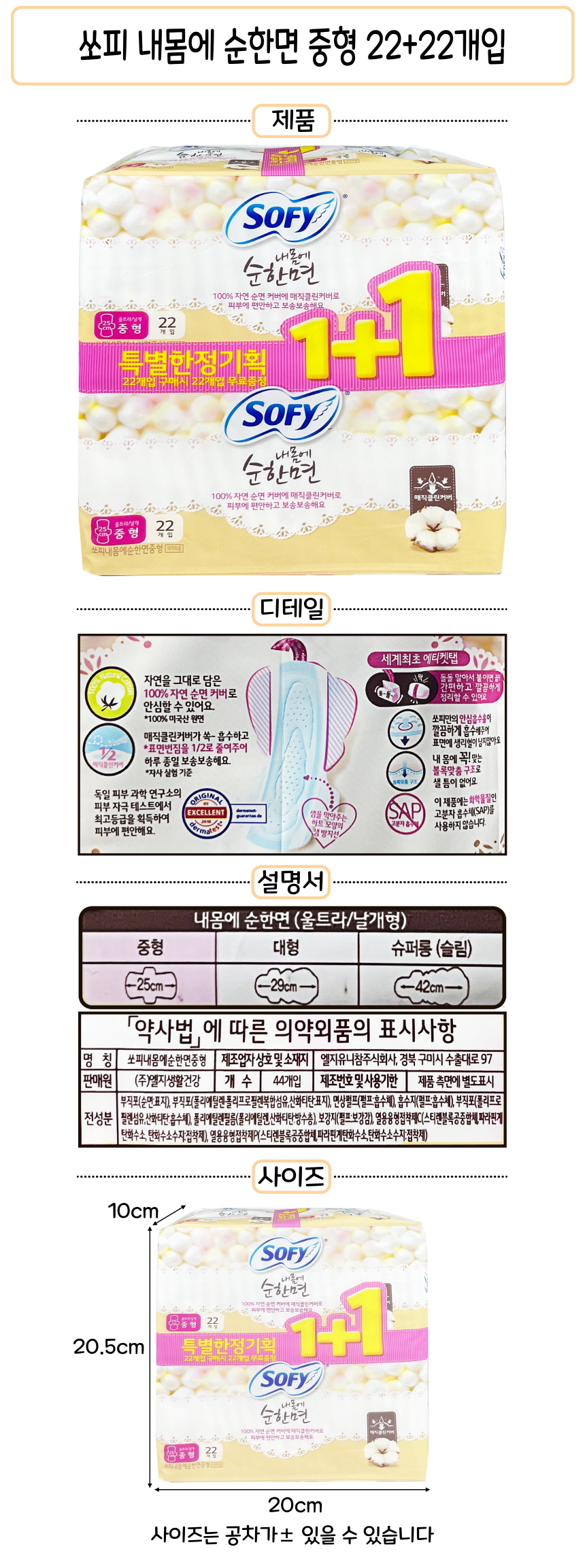 쏘피 내몸에 순한면 중형 22+22개입 생리대 - D