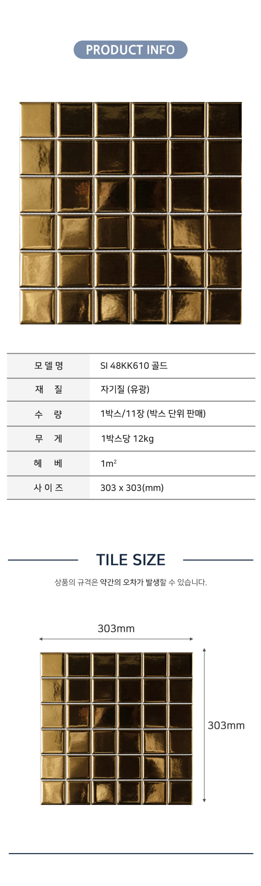 [모자이크타일] S48 SI 48KK610 골드 303X303 (1박스/11장) 유광