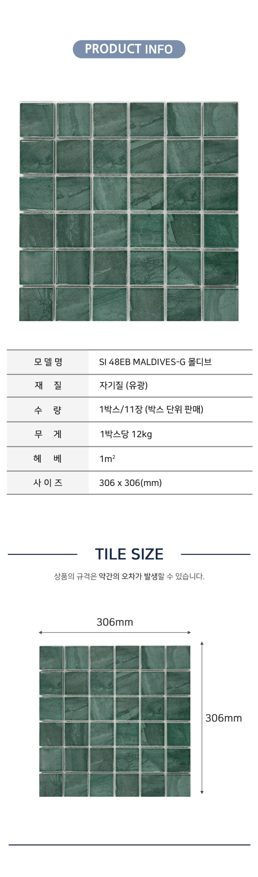 [모자이크타일] S48 SI 48EB MALDIVES-G 몰디브 306X306 (1박스/11장) 유광