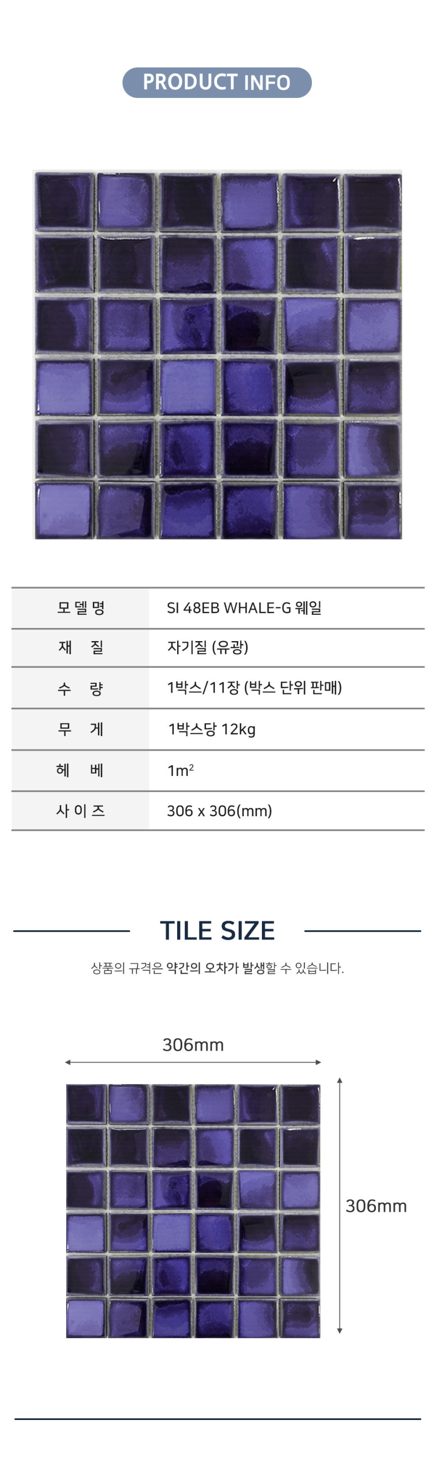 [모자이크타일] S48 SI 48EB WHALE-G 웨일 306X306 (1박스/11장) 유광