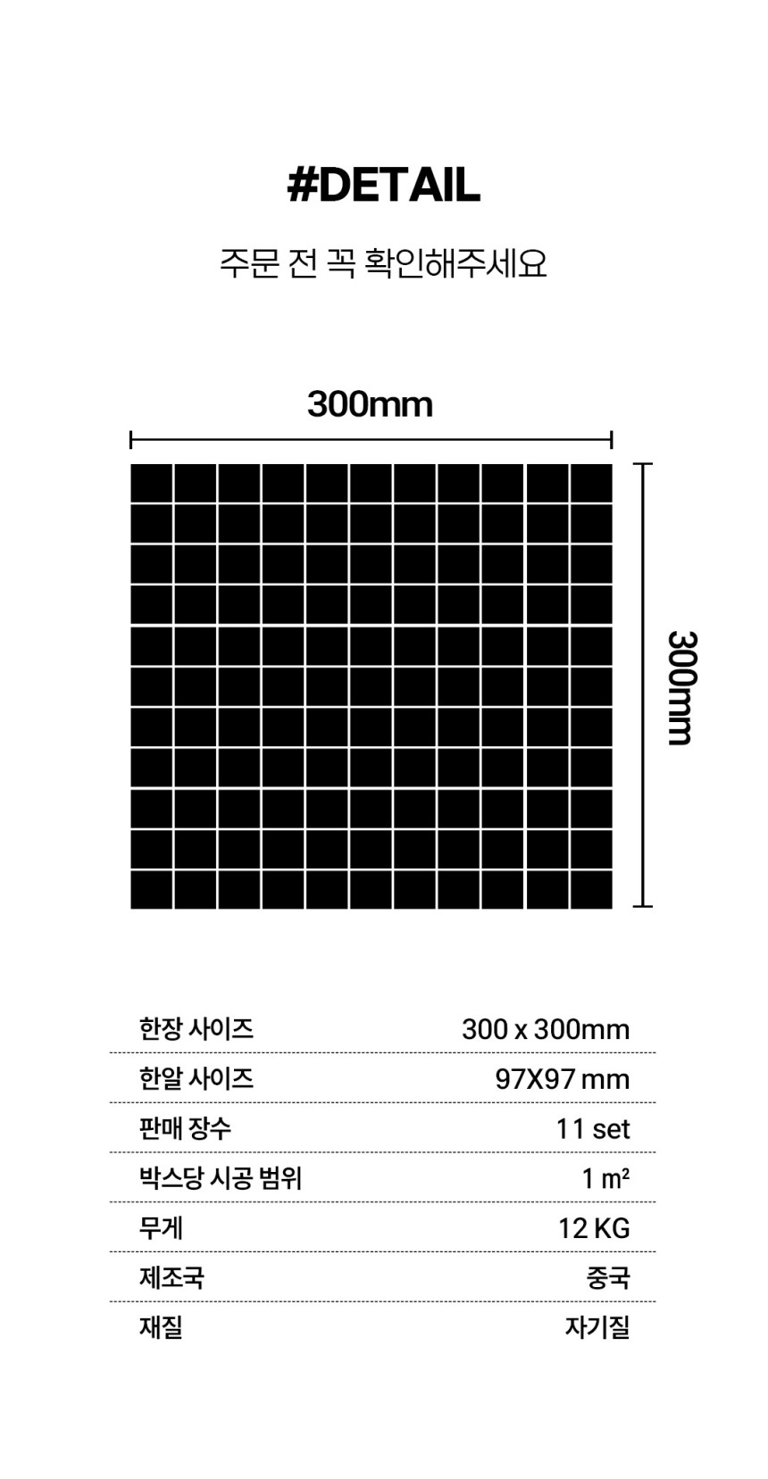 [모자이크 타일 시리즈] G98 시리즈 14컬러 297X297 (1박스/11장) 무광,유광