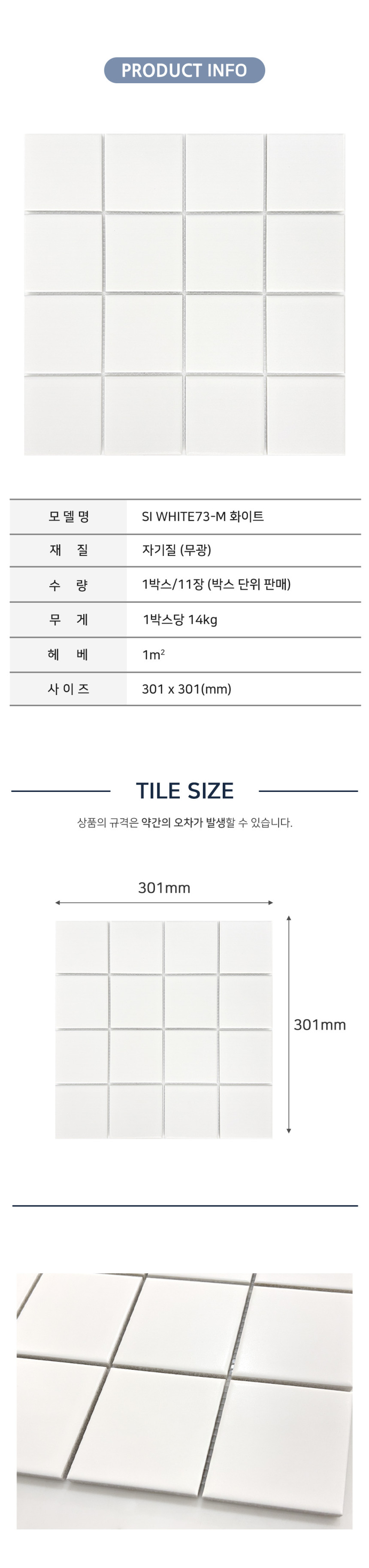 [모자이크타일] S73 SI WHITE73-M 화이트 301X301 (1박스/11장) 무광