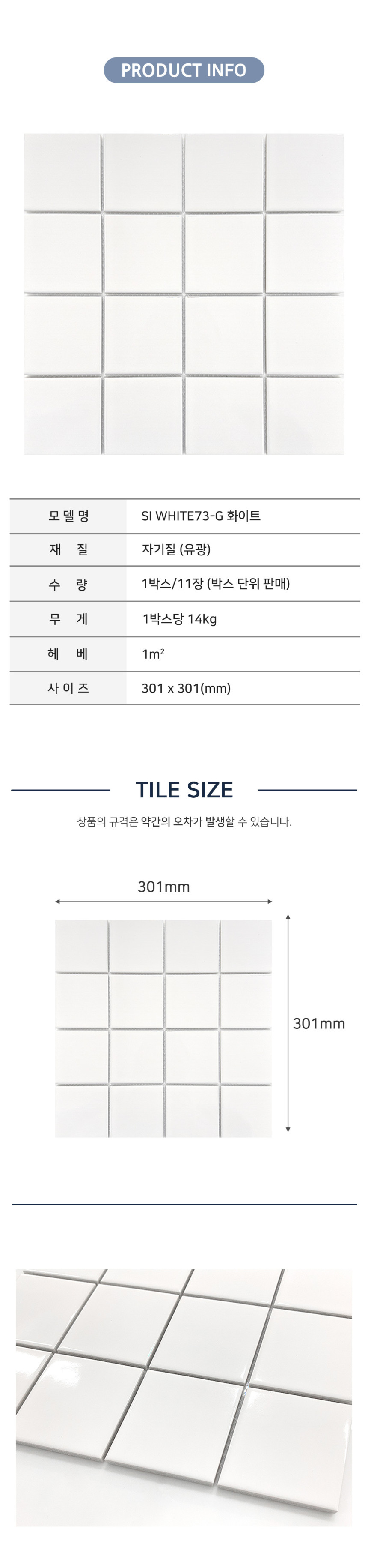 [모자이크타일] S73 SI WHITE73-G 화이트 301X301 (1박스/11장) 유광