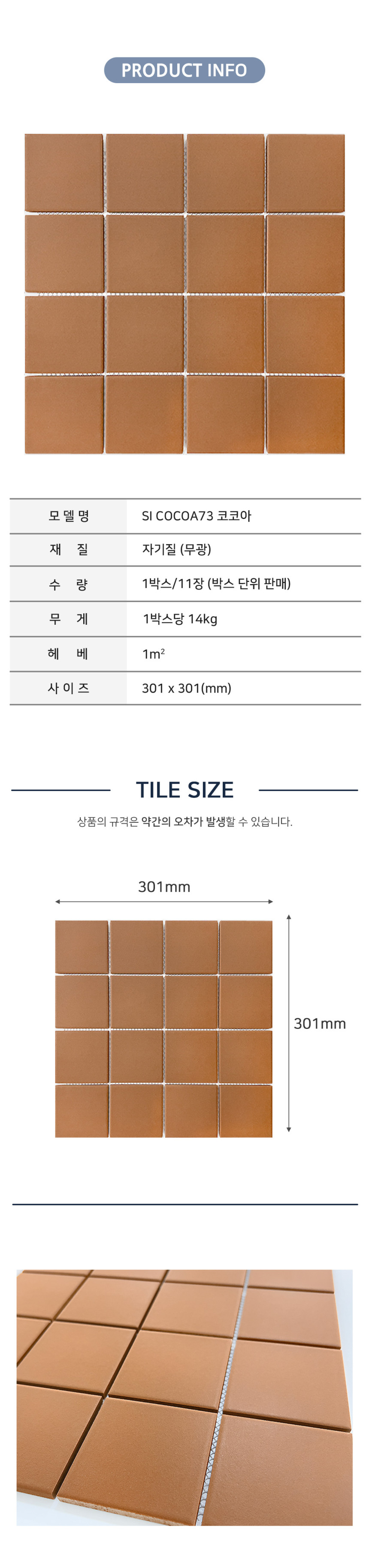 [모자이크타일] S73 SI COCOA73 코코아 301X301 (1박스/11장) 무광