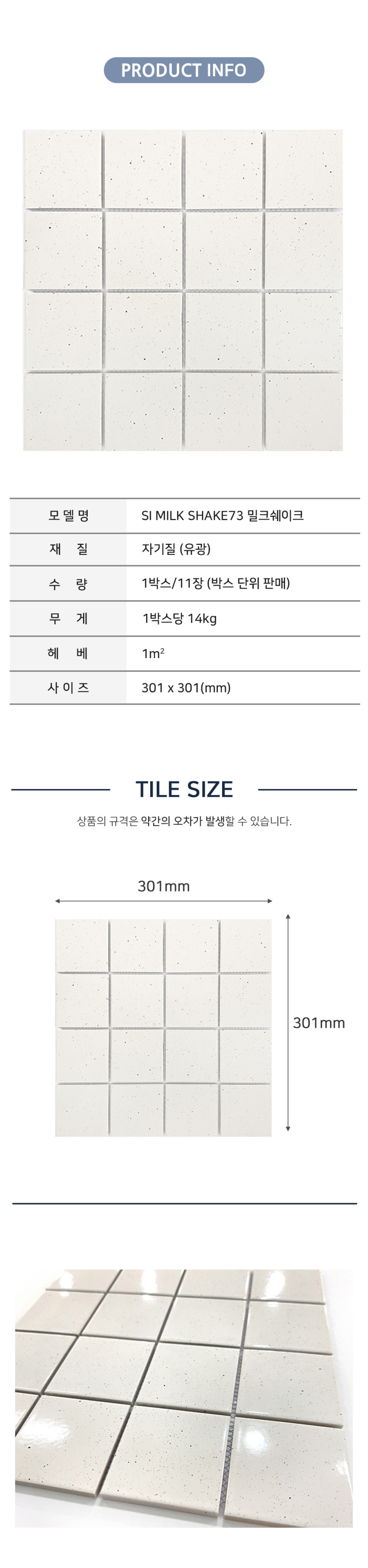 [모자이크타일] S73 SI MILK SHAKE73 밀크 쉐이크 301X301 (1박스/11장) 유광
