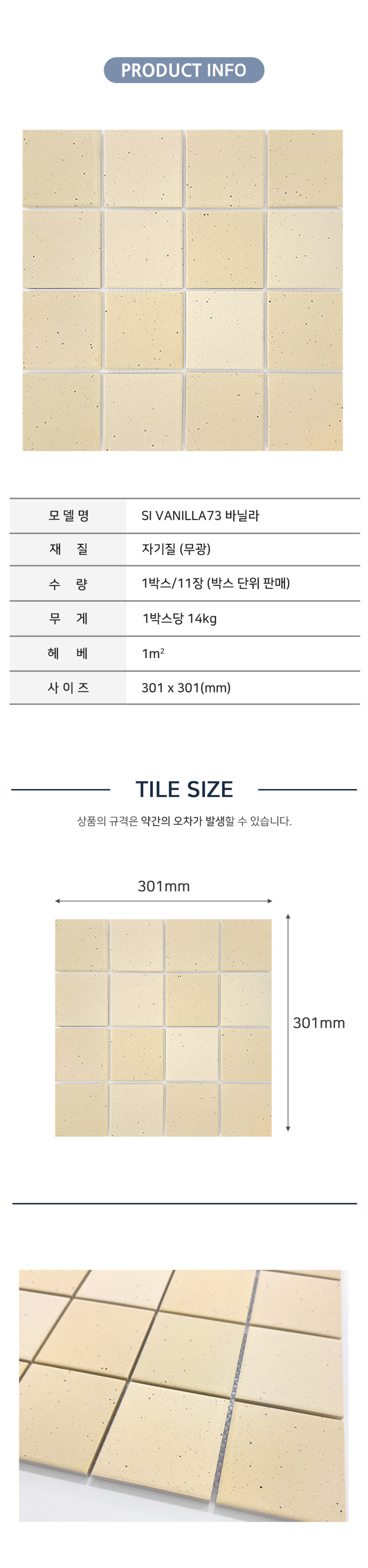 [모자이크타일] S73 SI VANILLA73 바닐라 301X301 (1박스/11장) 무광