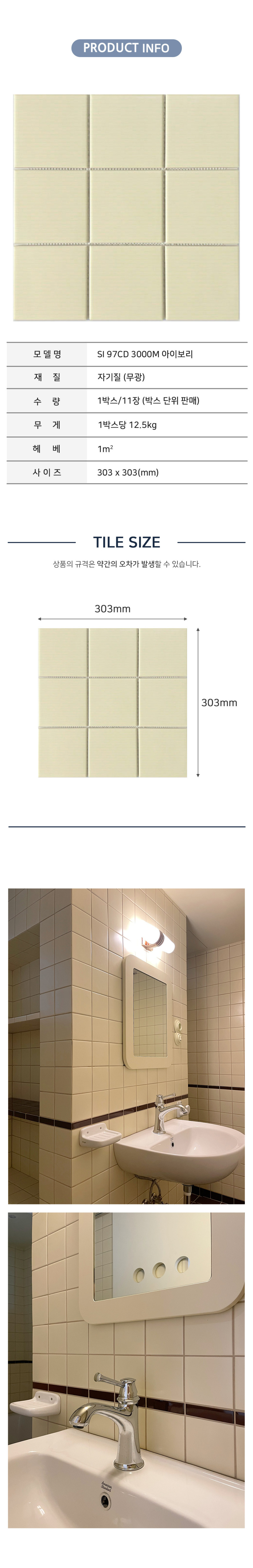 [모자이크타일] S97 SI 97CD 3000M 아이보리 303X303 (1박스/11장) 무광