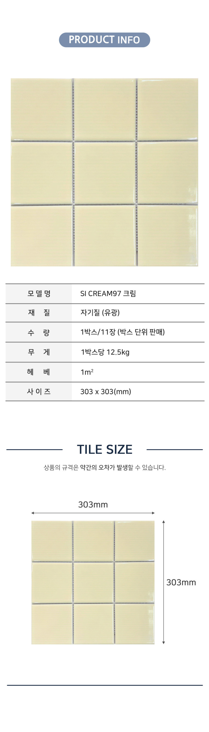 [모자이크타일] S97 SI CREAM97 크림 303X303 (1박스/11장) 유광