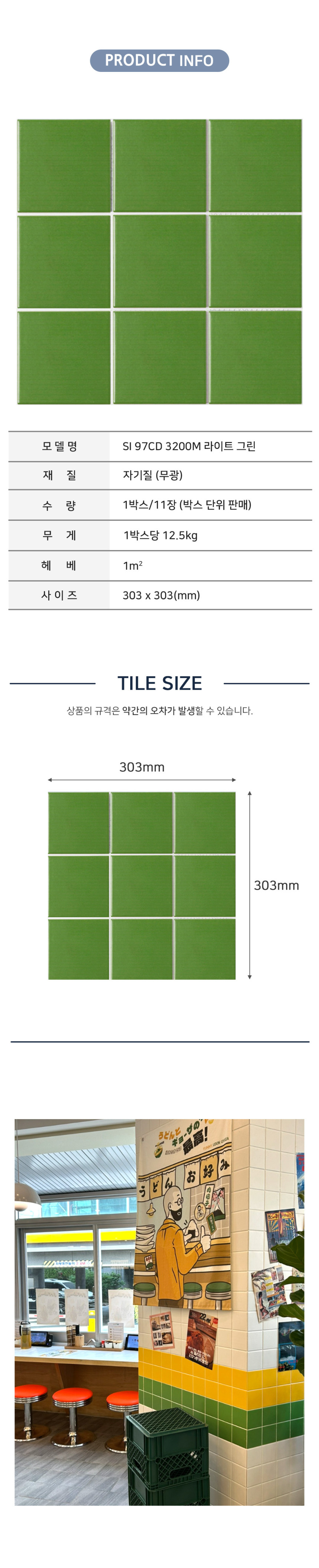 [모자이크타일] S97 SI 97CD 3200M 라이트 그린 303X303 (1박스/11장) 무광