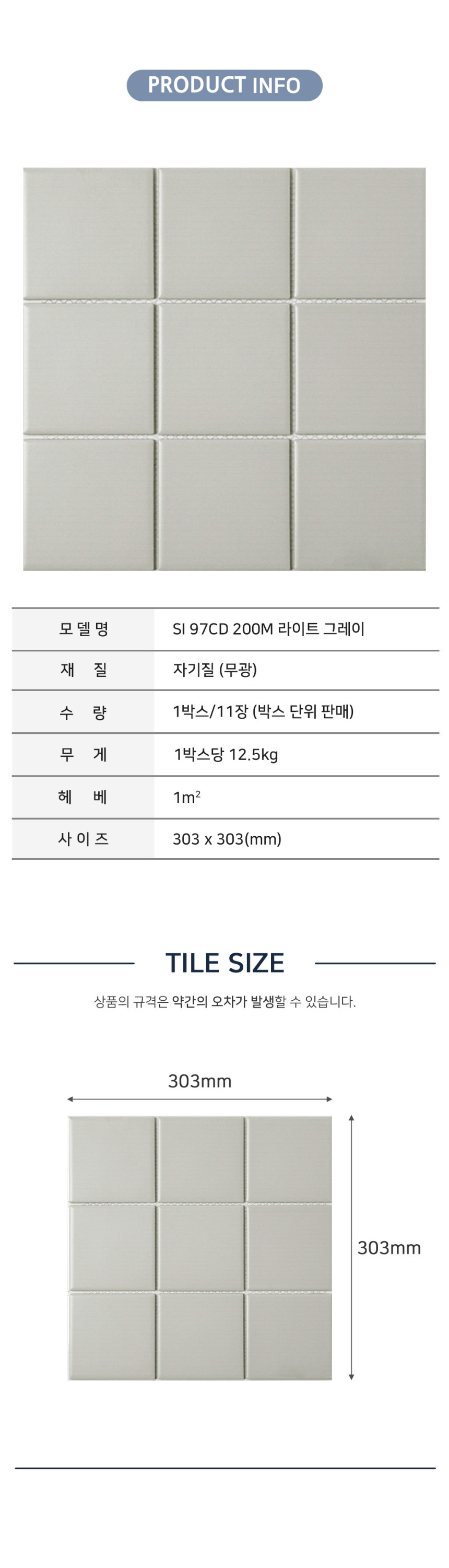 [모자이크타일] S97 SI 97CD 200M 라이트 그레이 303X303 (1박스/11장) 무광