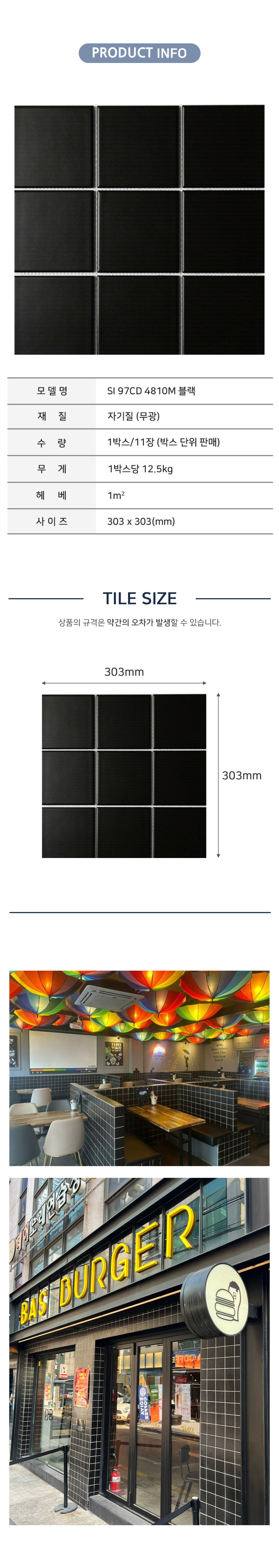 [모자이크타일] S97 SI 97CD 4810M 블랙 303X303 (1박스/11장) 무광