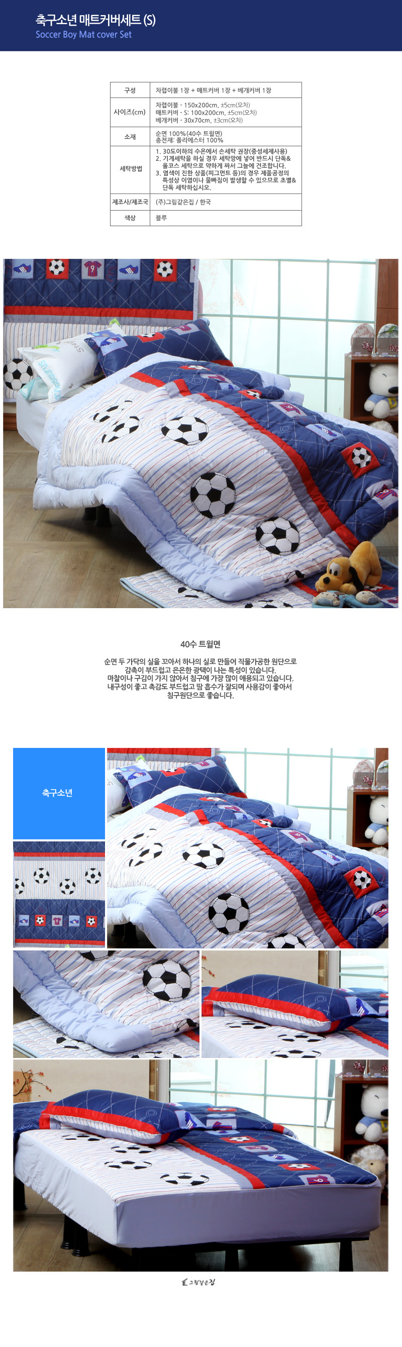 축구 소년 매트 커버 세트 S
