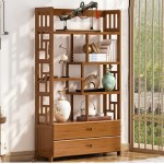 5단 대나무 원목 장식장 거실 매장 카페 가게 인테리어 진열대B 80cm