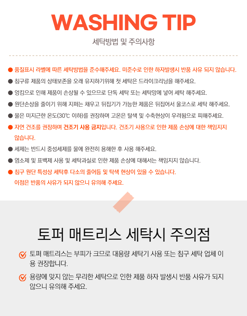 반품/교환에 관한 일반적인 사항은 판매자 제시사항보다 관계법령이 우선합니다. 반품배송비 : 편도 8,000원 교환배송비 : 왕복 16,000원 반품/교환 사유에 따른 요청 가능 기간 반품 시 먼저 판매자와 연락하셔서 반품사유, 택배사, 배송비, 반품지 주소 등을 협의하신 후 반품상품을 발송해 주시기 바랍니다. 구매자 단순변심 : 상품 수령 후 7일 이내 (구매자 반품배송비 부담) 표시/광고와 상이, 상품하자 : 상품 수령 후 3개월 이내 혹은 표시/광고와 다른 사실을 안 날로부터 30일 이내 (판매자 반품배송비 부담) 둘 중 하나 경과 시 반품/교환 불가 반품/교환 불가능 사유 아래와 같은 경우 반품/교환이 불가능합니다. 1. 반품요청기간이 지난 경우 2. 구매자의 책임 있는 사유로 상품 등이 멸실 또는 훼손된 경우(단, 상품의 내용을 확인하기 위하여 포장 등을 훼손한 경우는 제외) 3. 구매자의 책임있는 사유로 포장이 훼손되어 상품 가치가 현저히 상실된 경우 (예: 식품, 화장품, 향수류, 음반 등) 4. 구매자의 사용 또는 일부 소비에 의하여 상품의 가치가 현저히 감소한 경우 (라벨이 떨어진 의류 또는 태그가 떨어진 명품관 상품인 경우) 5. 시간의 경과에 의하여 재판매가 곤란할 정도로 상품 등의 가치가 현저히 감소한 경우 6. 고객의 요청사항에 맞춰 제작에 들어가는 맞춤제작상품의 경우 (판매자에게 회복불가능한 손해가 예상되고, 그러한 예정으로 청약철회권 행사가 불가하다는 사실을 서면 동의 받은 경우) 7. 복제가 가능한 상품 등의 포장을 훼손한 경우 (CD/DVD/GAME/도서의 경우 포장 개봉 시)