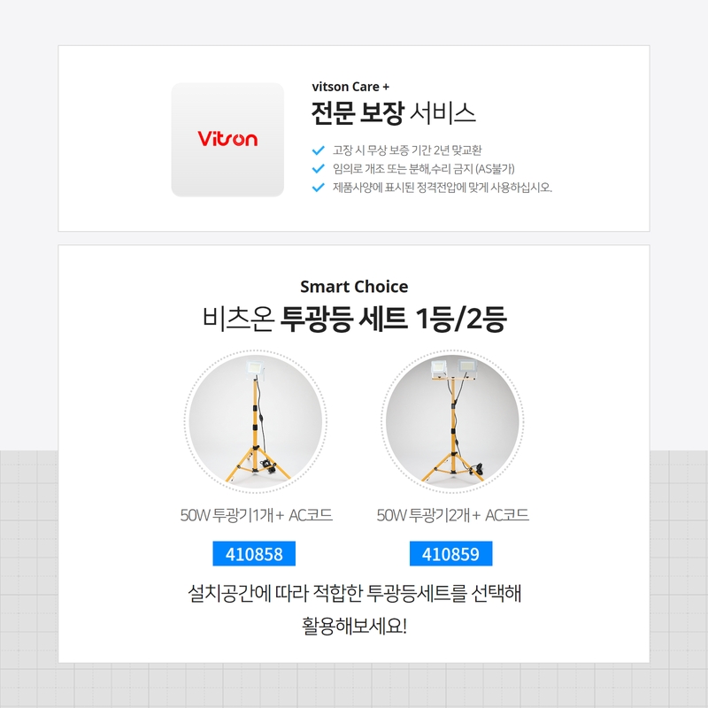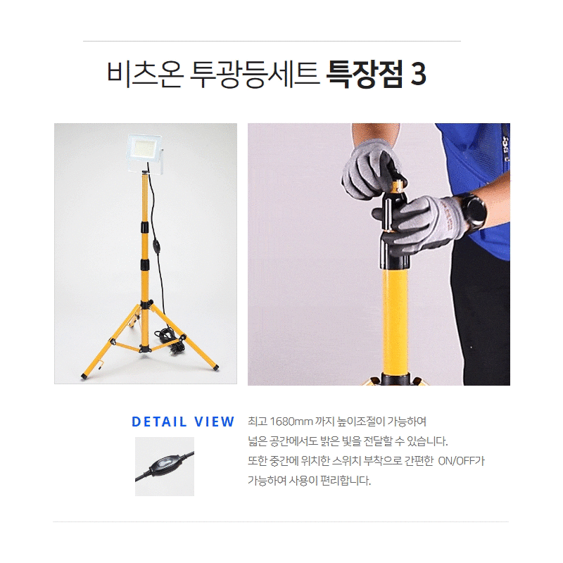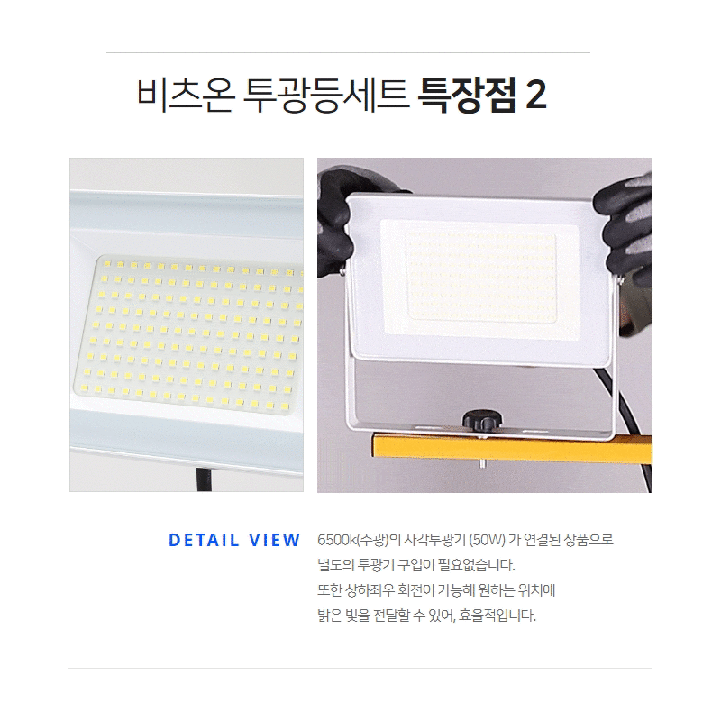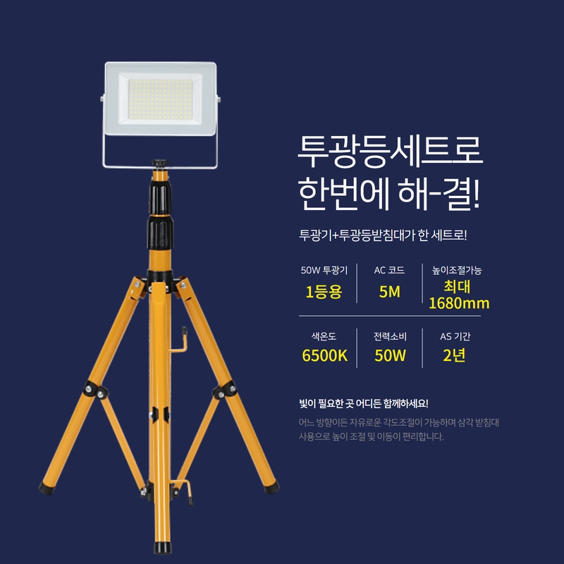 LED 투광등 세트 스위치형 50W 투광기 1개 AC코드 산업용LED 야외조명등