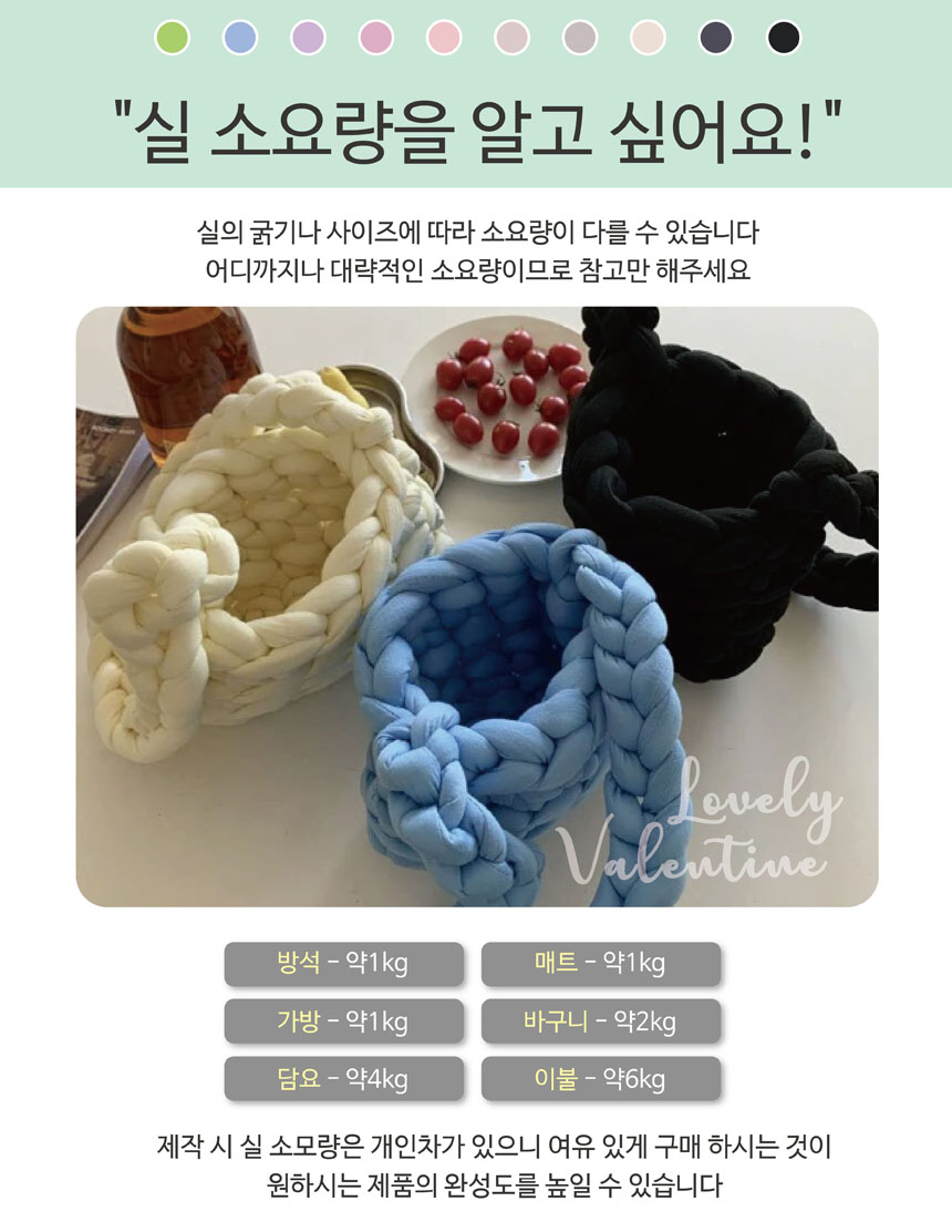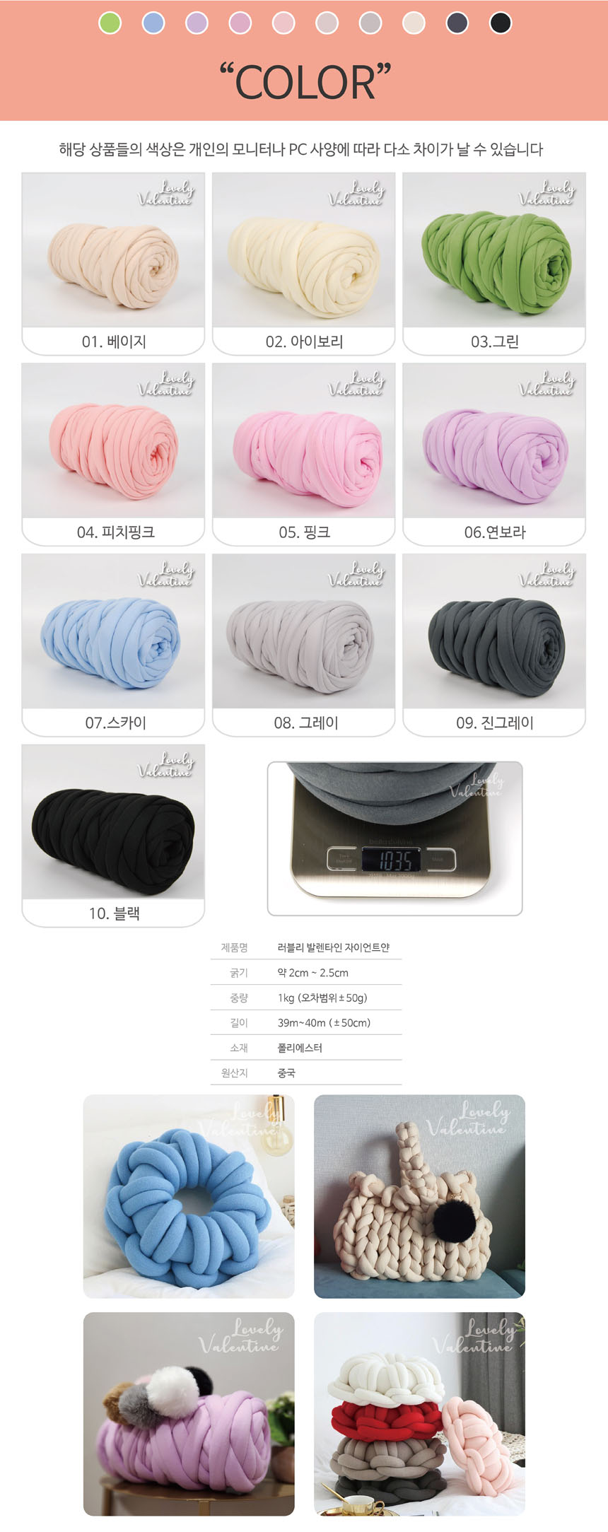 러블리 발렌타인 자이언트얀 1kg 가방만들기 뜨개실 핑거 핸드 니팅 뜨개질 털실