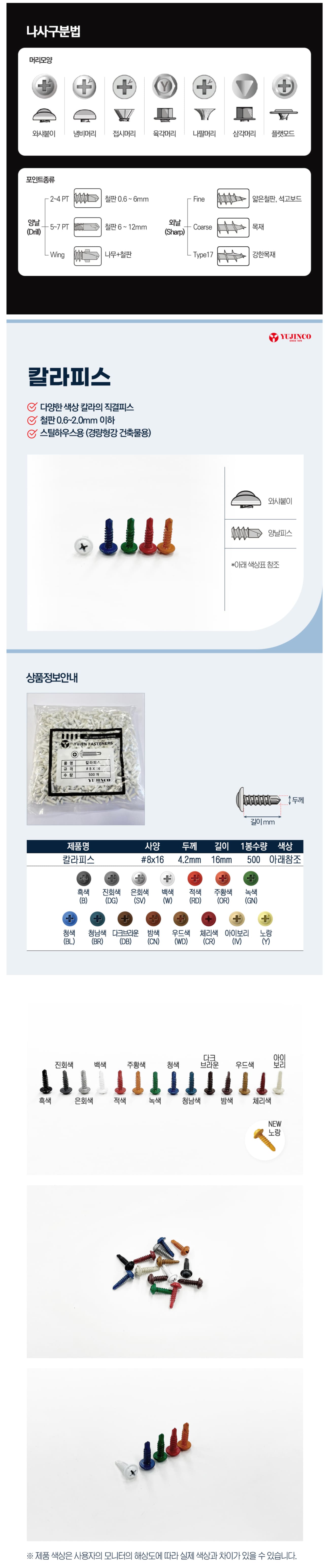 직결 피스 목재 목공 철판 컬러 피스 청색 8x16 500p
