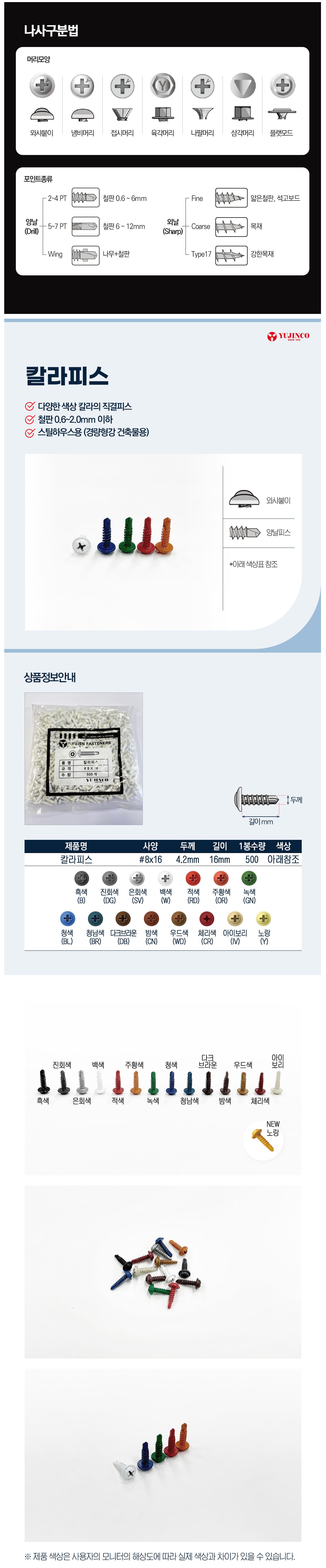 직결 피스 목재 철판 컬러 피스 다크브라운 8x16 500p