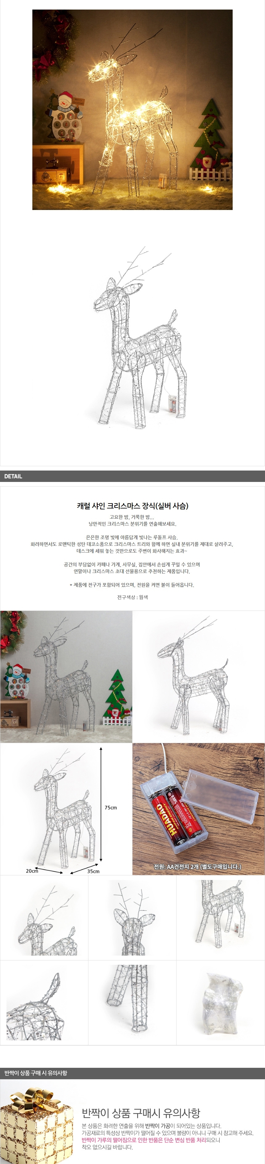 캐롤 샤인 인테리어 크리스마스 트리 장식 실버 사슴