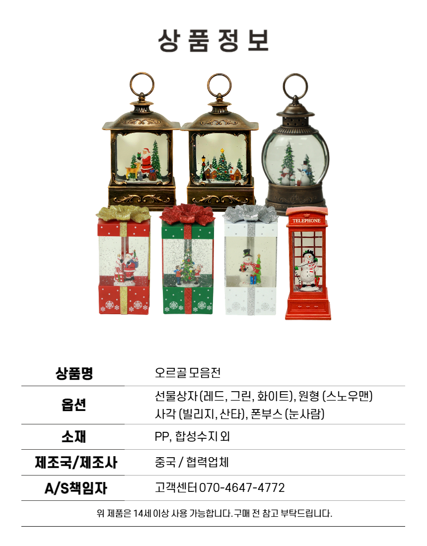 오르골 모음전 크리스마스 무드등 워터볼 선물상자 전화부스 빈티지 감성 인테리어 소품