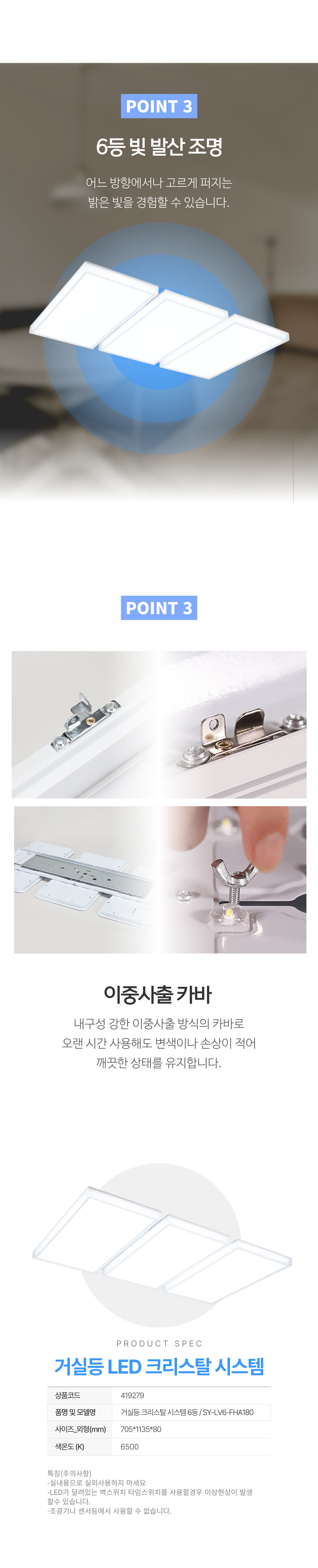 | 품명 및 모델명 | 거실등 크리스탈 시스템 6등 / SY-LV6-FHA180 |