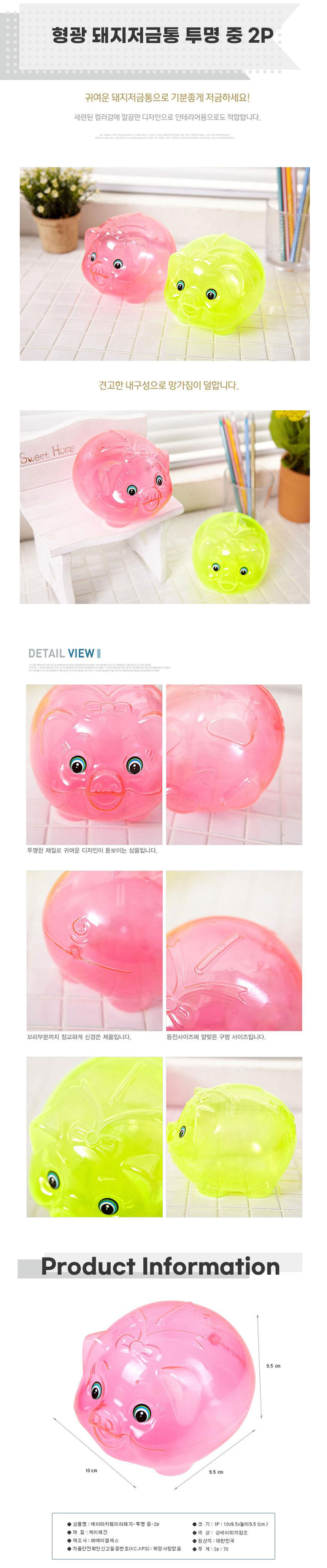 형광 돼지저금통 투명 중 2Px5개 저금통문구류