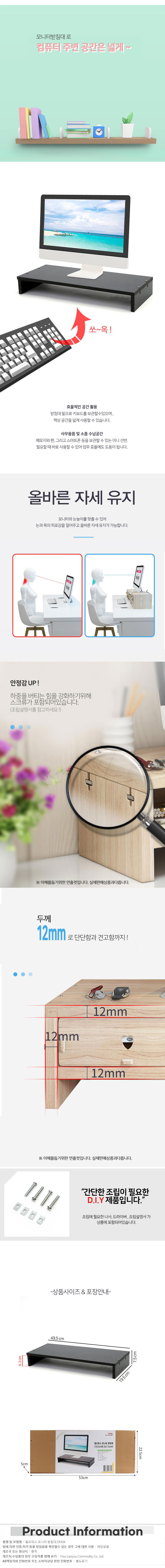 데스크정리 심플 모니터 받침대 19.5x49.5x7.5cm 블랙