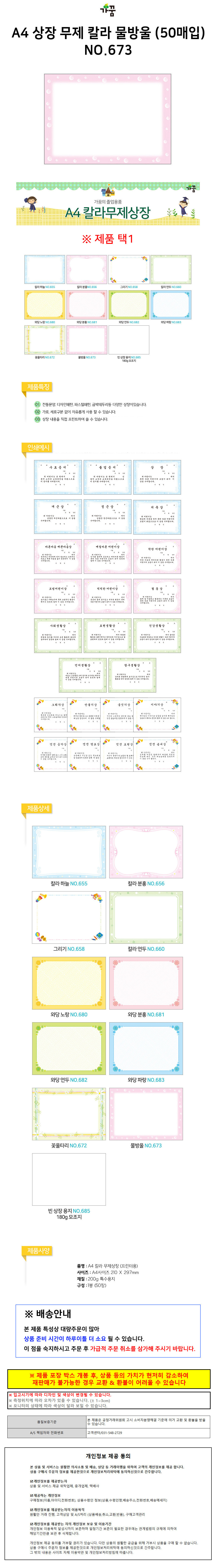 가꿈 상장용지 A4 상장 무제 칼라 물방울 (50매입) (NO.673) 졸업식 상장 만들기