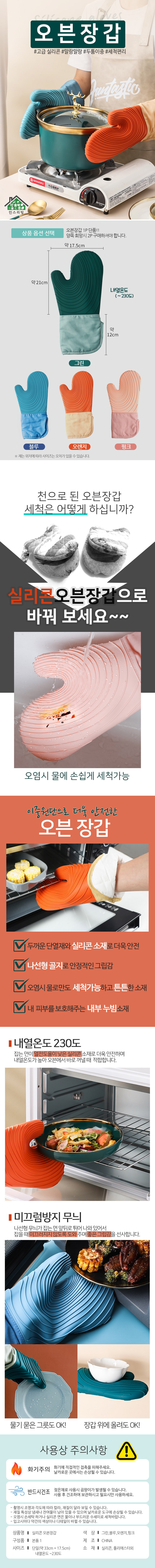 1+1 실리콘 주방장갑 오븐 내열장갑 쿠킹글러브