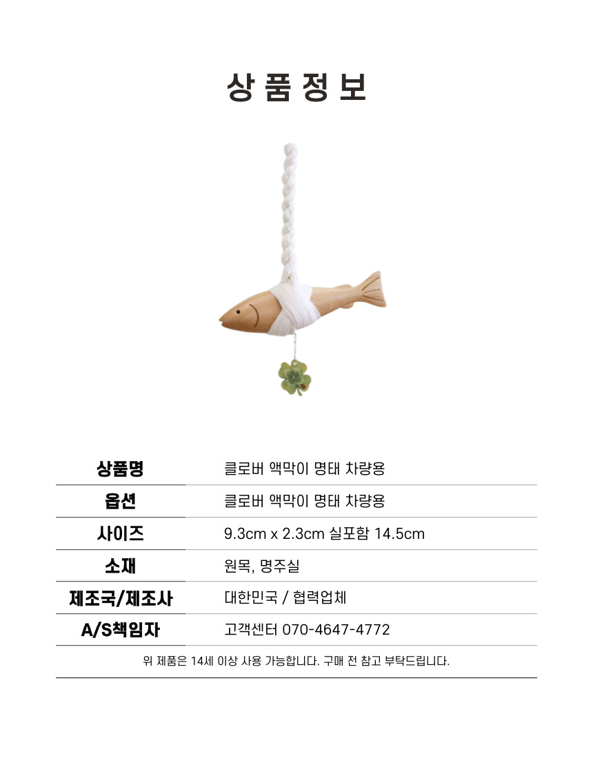 클로버 액막이 명태 차량용 행운 부적 첫차 새차 고사 신차 룸미러 걸이형