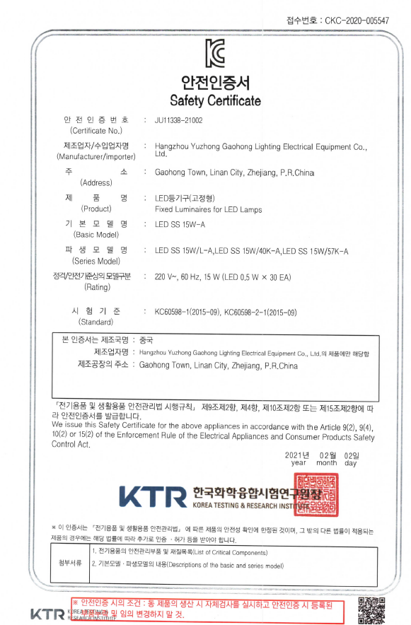 | 전자파적합번호 | R-R-YZ1-LEDSS15W21 |