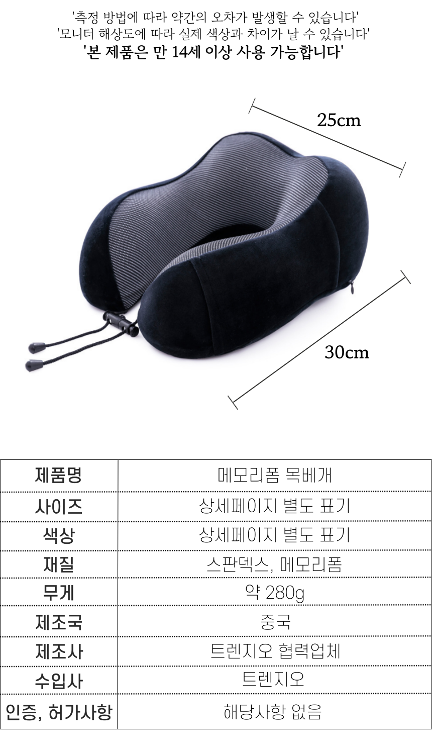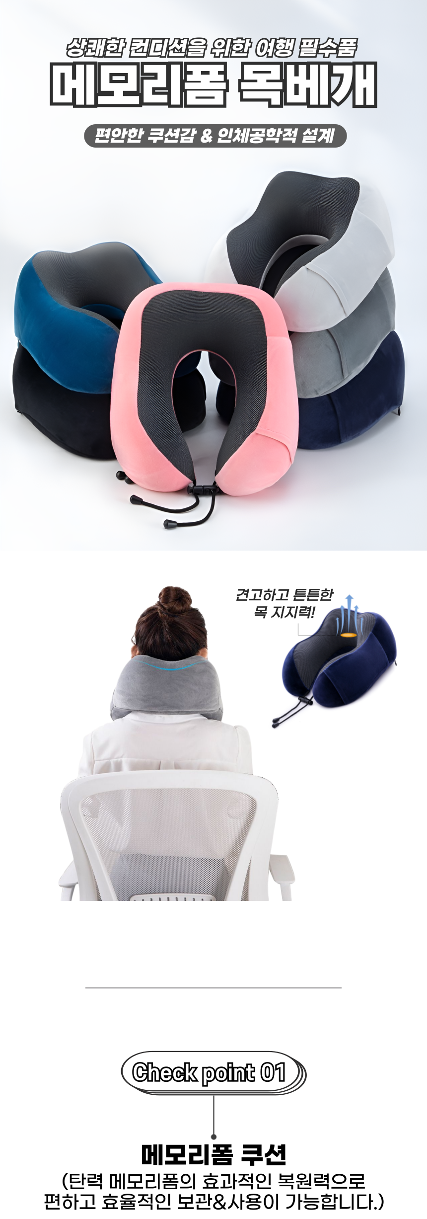 목베개 메모리폼 목쿠션 통기성 기내용 차량용 여행용 목받침 [개별 진공포장]
