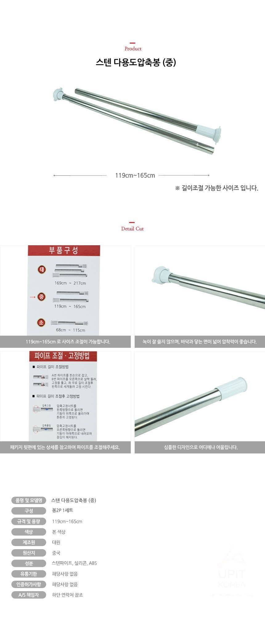 (중) 압축봉 공간활용 옷걸이봉 확장봉 다용도봉 고정봉
