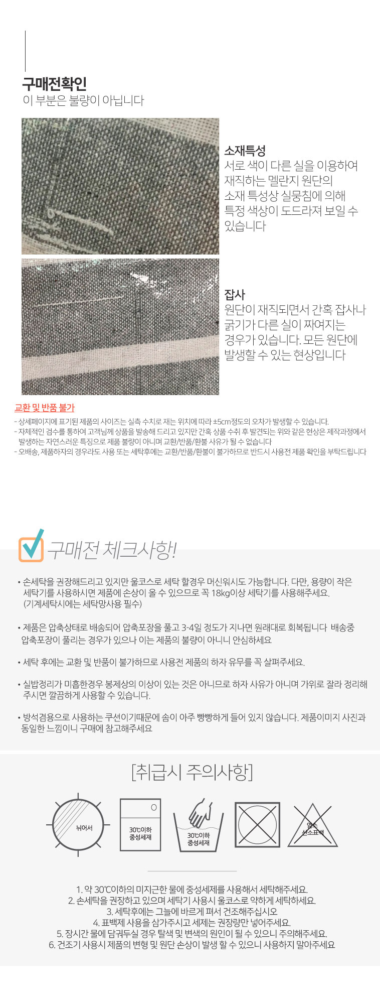 반품/교환에 관한 일반적인 사항은 판매자 제시사항보다 관계법령이 우선합니다.