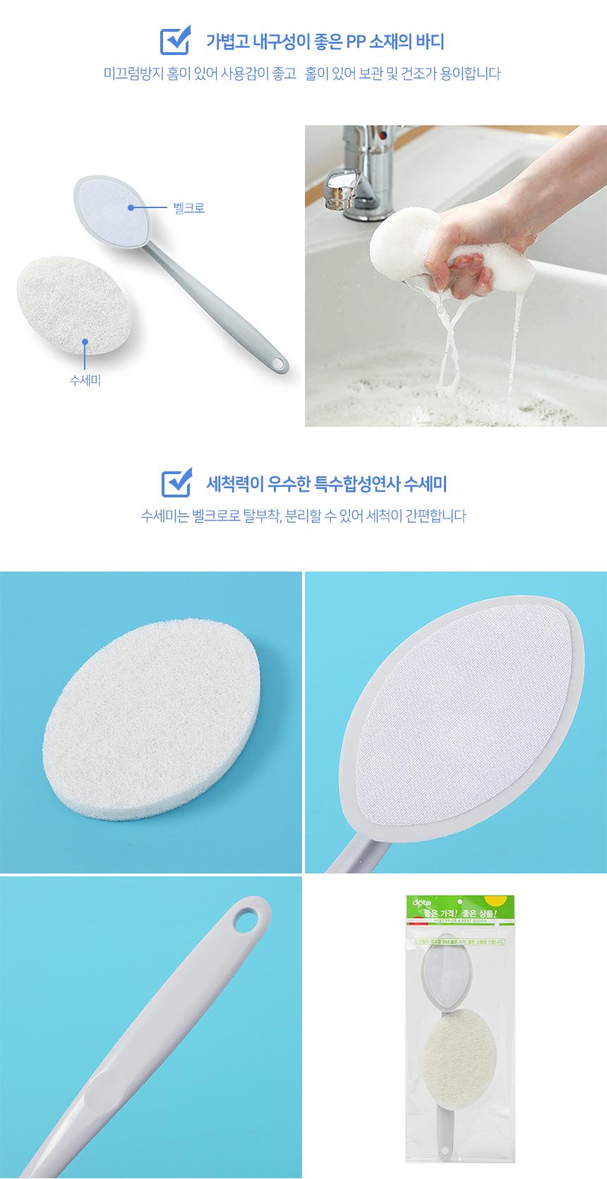 편리한 수세미 긴손잡이 간편 청소솔(그레이) x4개