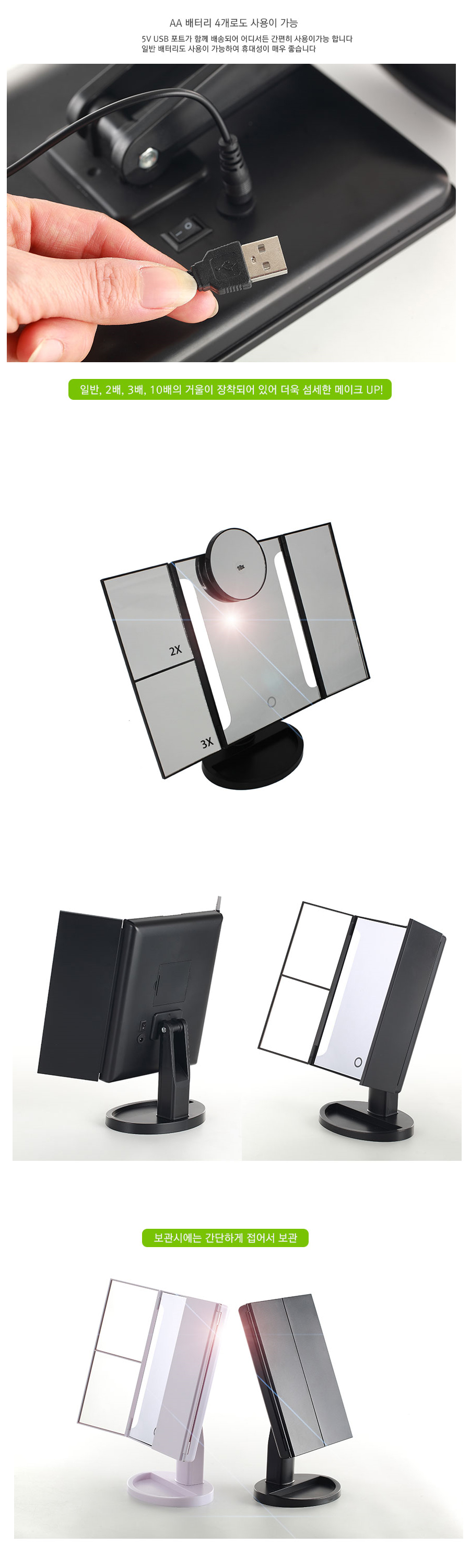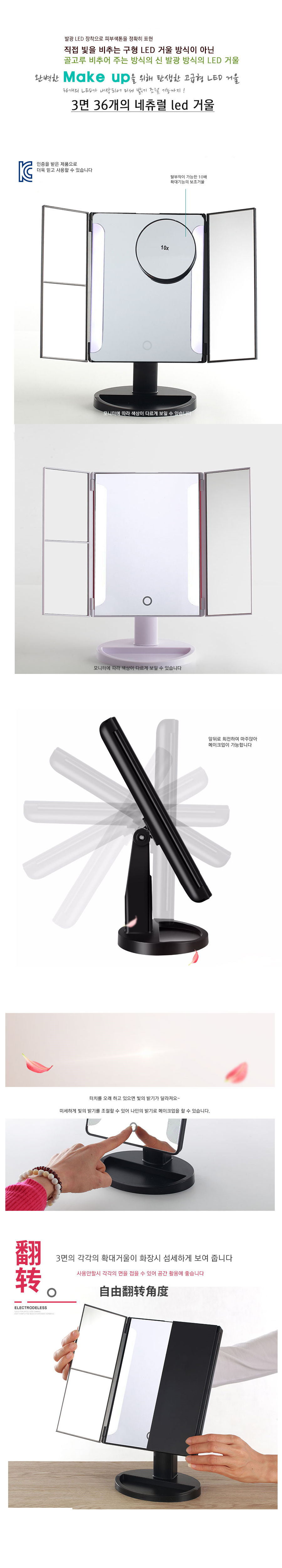 • 모델명 3면 36LED 화장거울 메이크업거울 블랙색상 LED거