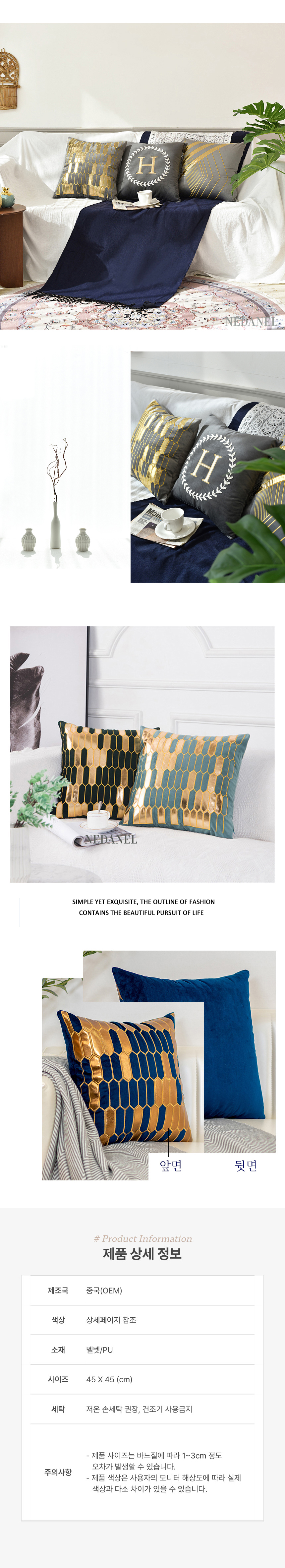 느다넬북유럽벨벳쇼파쿠션커버사각인테리어거실포인트소파쿠션무지골드겨울패브릭쿠션커버45