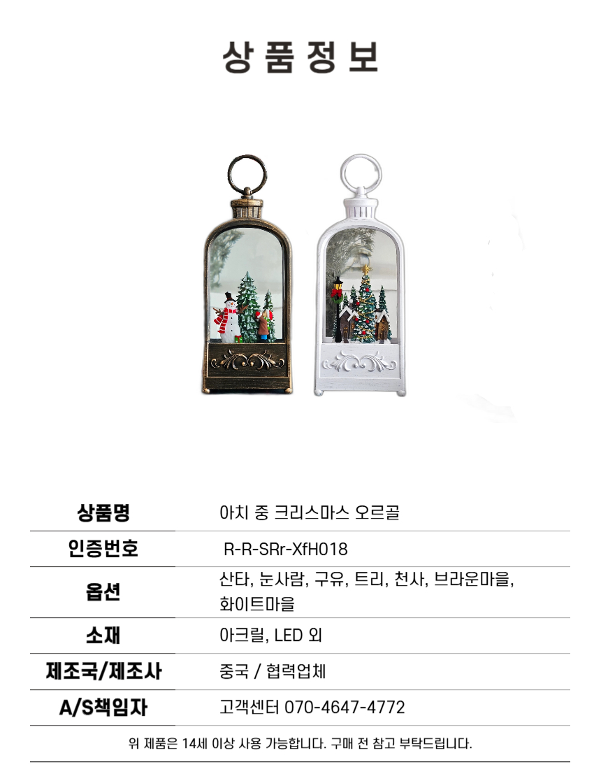 크리스마스 오르골 아치 중 워터볼 무드등 홀리데이 스노우볼 조명 선물