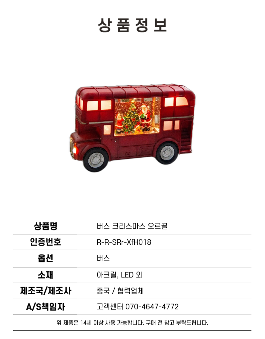 버스 크리스마스 오르골 무드등 조명 워터볼 스노우볼 감성 홀리데이