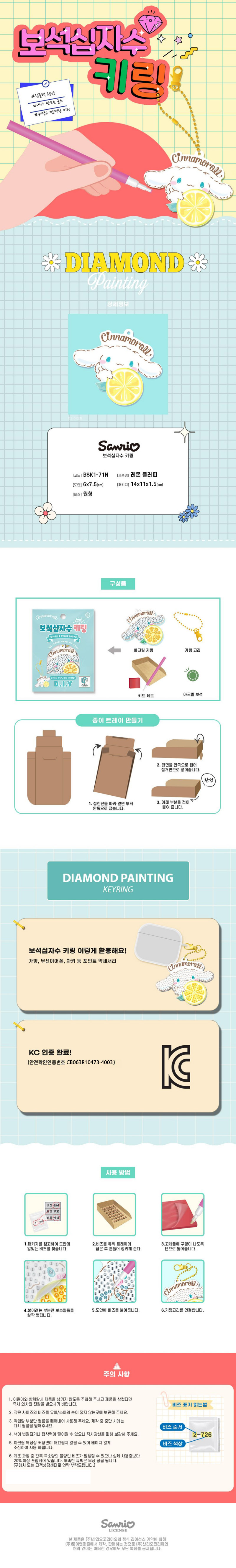 산리오 DIY 보석십자수 키링 시나모롤 레몬 3P 키홀더