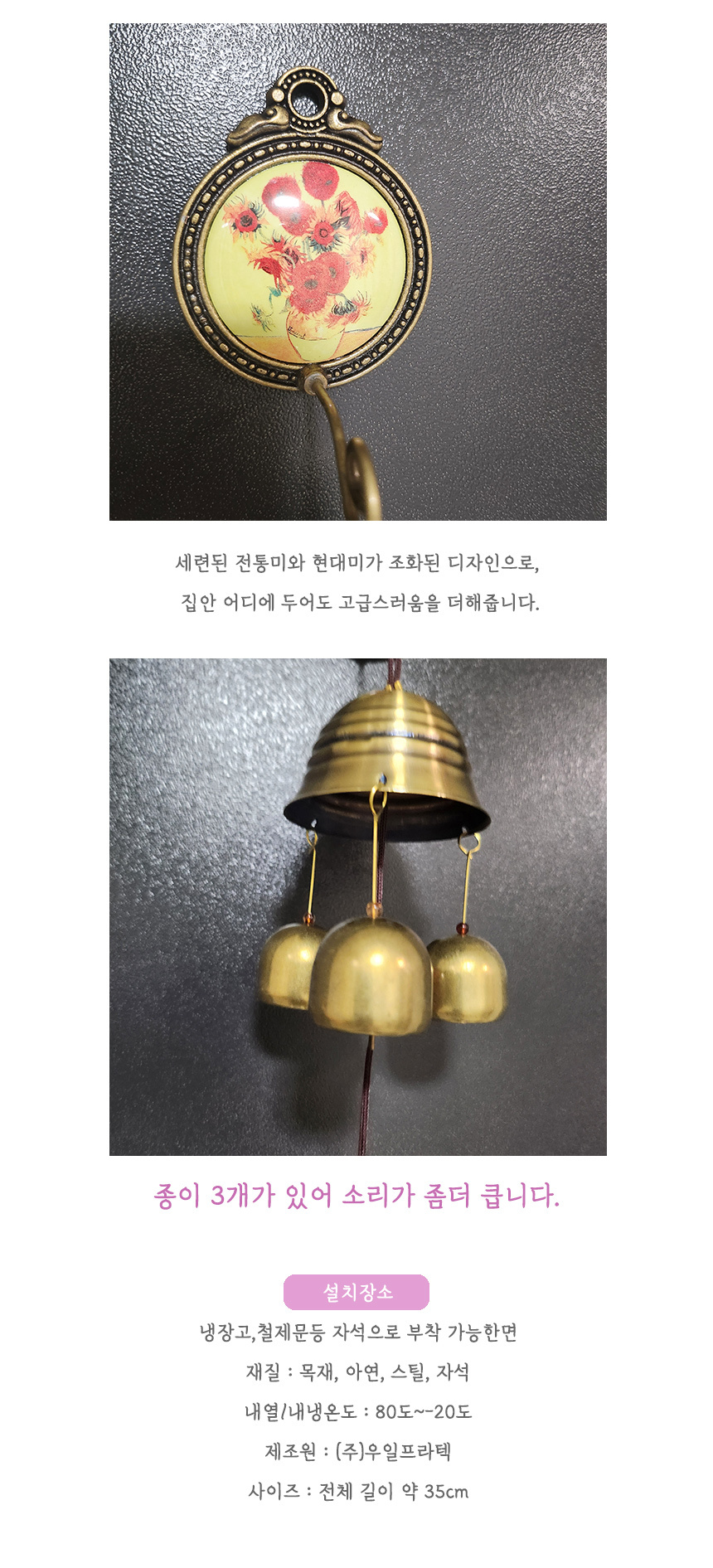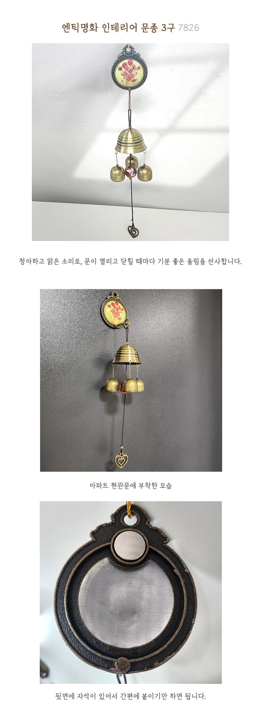 엔틱명화 인테리어 문종 3구 7826/ 자석 문방울 가게문종 풍경종 현관 집들이선물