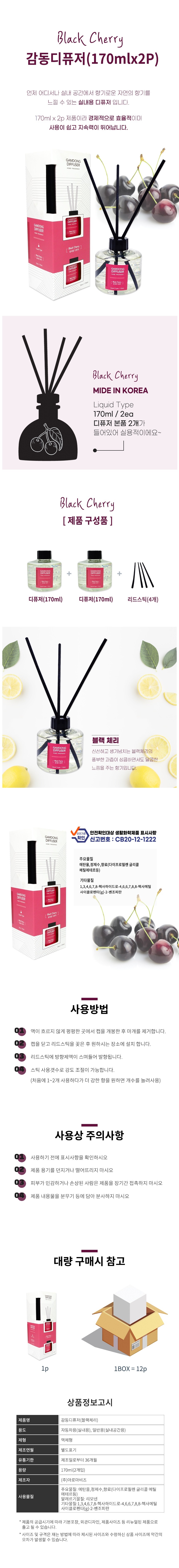 이 감동디퓨저 본품 170ml 2p 1개 블랙체리 디퓨저 방향제