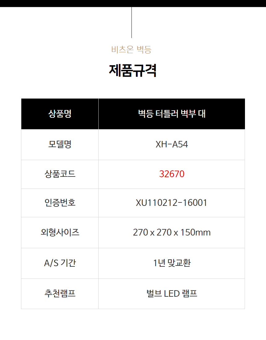 | 품명 및 모델명 | 벽등 터틀러 / 벽부 대 |