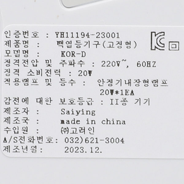| 품명 및 모델명 | 원통파30 다이렉트/백색 (직부형) |