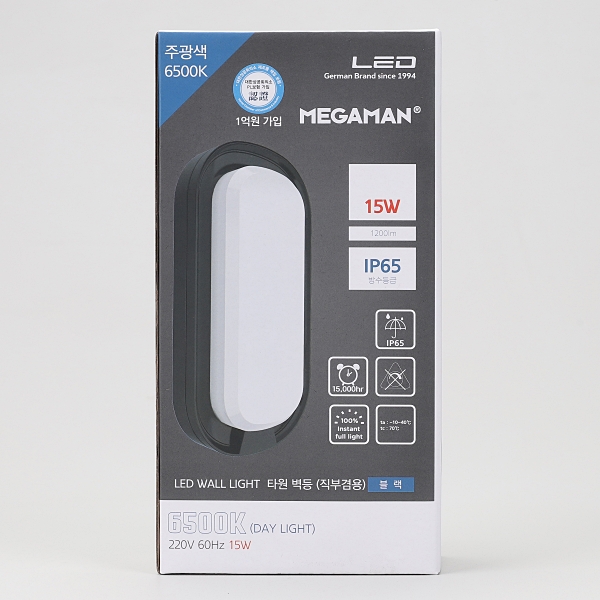 | 품명 및 모델명 | 벽등 LED 직부겸용 MEGA / 타원 15W ★주광★ 블랙 IP65 KS |