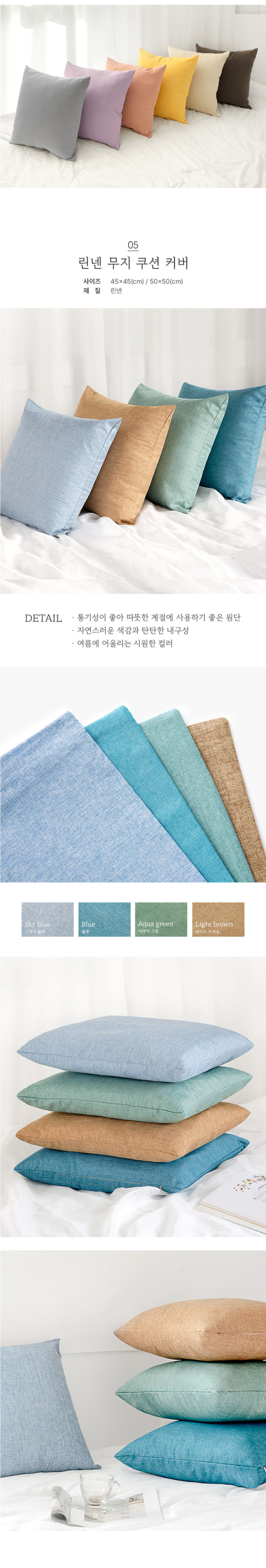 BS 쿠션 커버 솜 포함 린넨 무지 스카이블루 50x50 북유럽