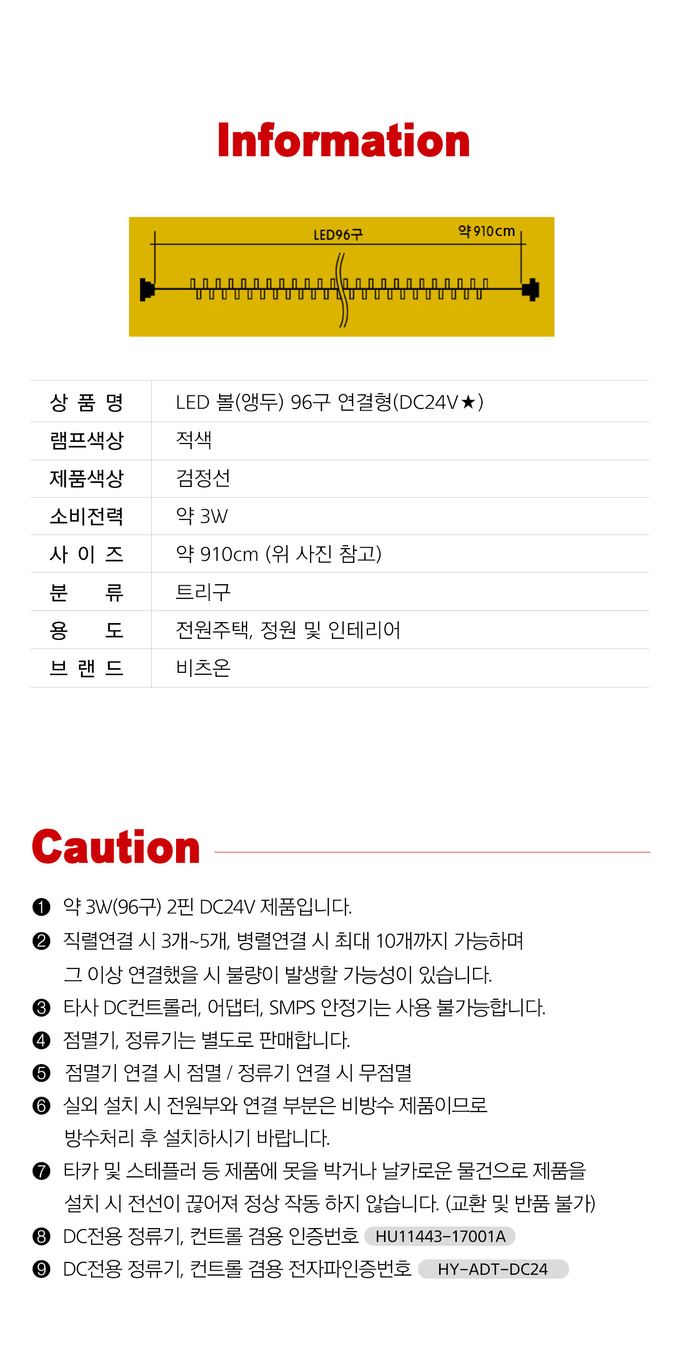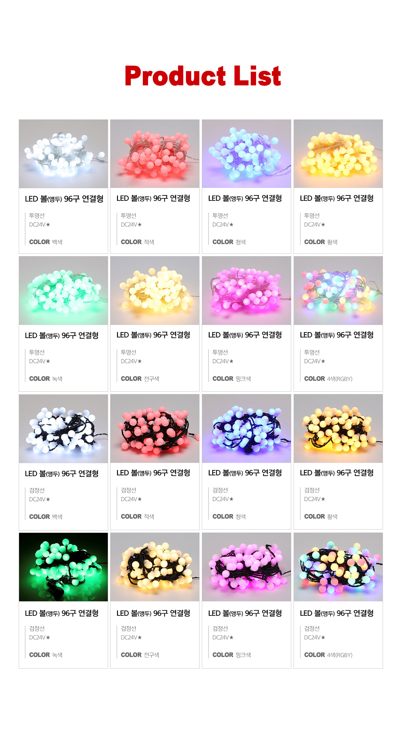 | 품명 및 모델명 | LED 볼(앵두) 96구 연결형(DC24V★) |