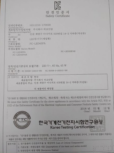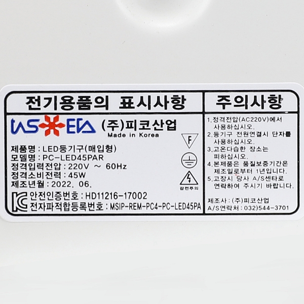 | 전자파적합번호 | MSIP-REM-PC4-PC-LED45PA |