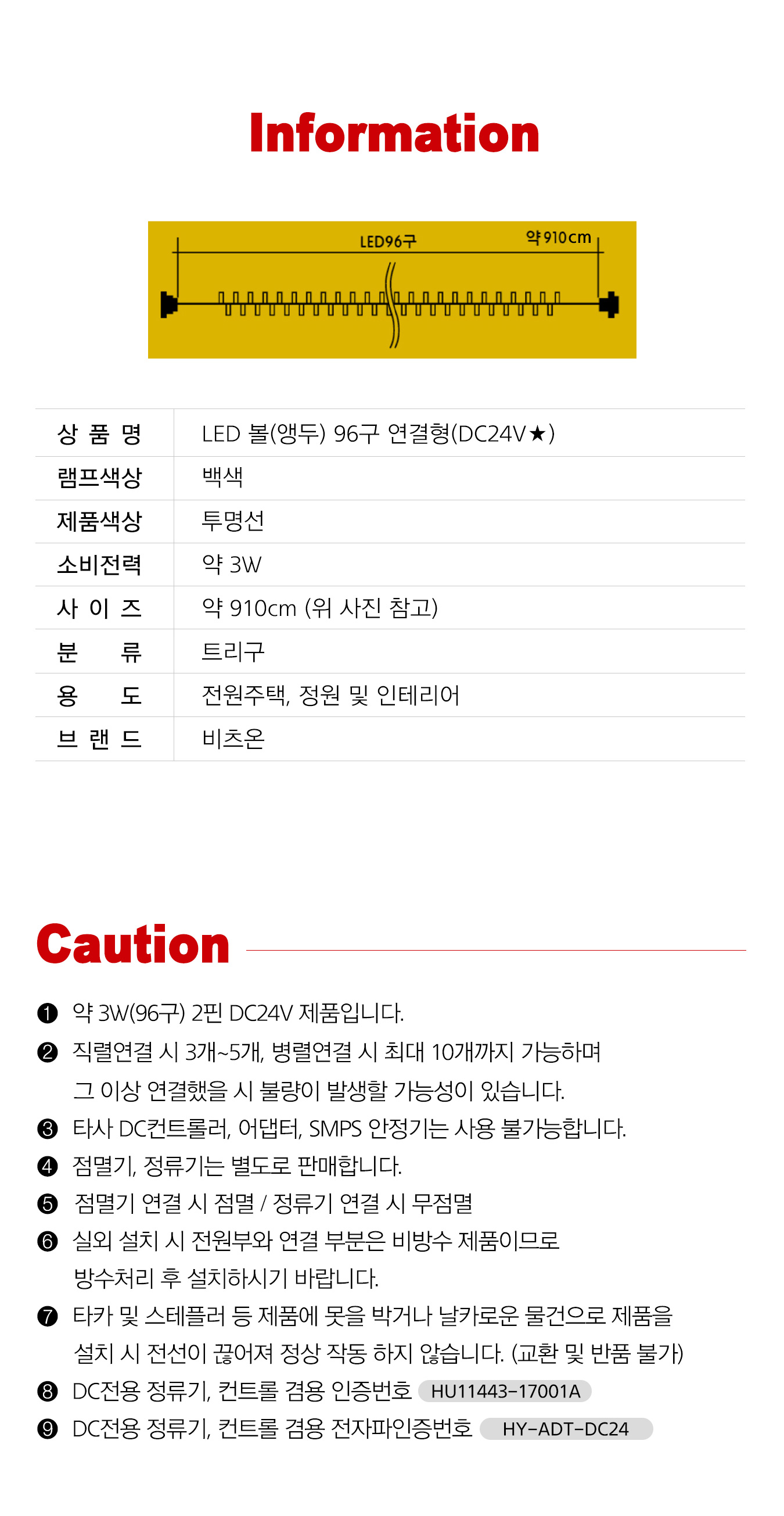 | 품명 및 모델명 | LED 볼(앵두) 96구 연결형(DC24V★) |